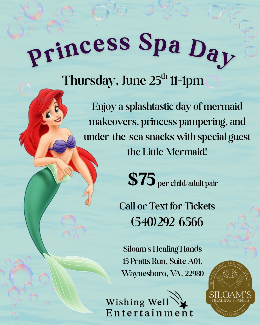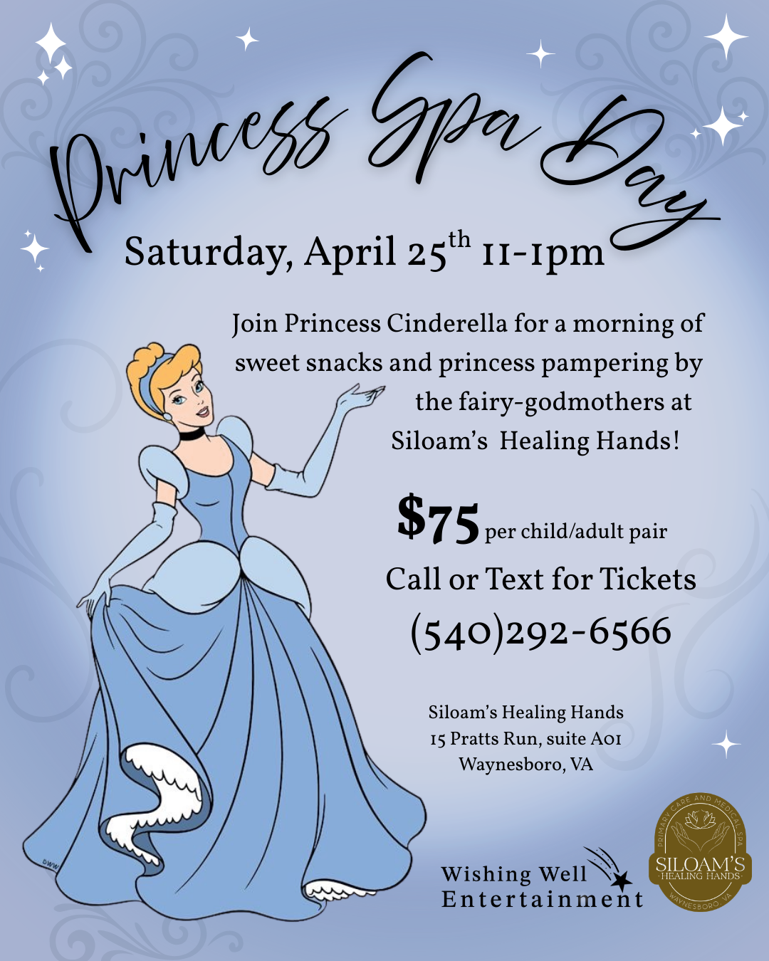 Partners and Events Partners and Events Partners and Events Wishing Well Entertainment proudly presents monthly princess spa days with Siloam’s Medical Spa. Text to buy your tickets! Plus, book a princess spa party at Siloam’s for a special rate! Our favorite one stop shop for all your party planning needs. Hit them up for balloon setups, themed decor, and party favors!Check back in soon for our next event with Now It’s A Party! View fullsize
